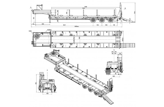 47000 кг, шины 445/65R22,5 395/85R20 / 6+1, платформа 11220 до трапов) x 2500 с уширителями до 3000 мм, механические трапы, ССУ 1530 мм, пневматическая или рессорная подвеска, раздвижные коники 1500 мм
