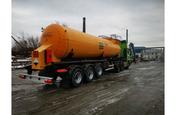 Материал: химстойкое стекловолокно, емкость: 22,5; утепленная, перевозимые жидкости: кислоты/едкие вещества/нефть/техвода/щелочные и солевые растворы, автошины 385/65R22,5; передняя ось - подъемная