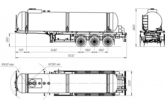 Материал: химстойкое стекловолокно, емкость: 22 куб.м., сечение: эллипсное, конструкция: однослойная или трехслойная (волокно, утеплитель, волокно), крепление: при помощи стяжных лент, перевозимые жидкости: кислоты/едкие вещества/нефть/техвода/щелочные и солевые растворы, автошины 385/65R22,5